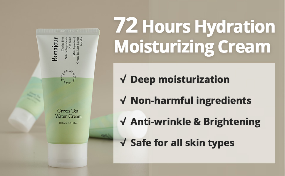 BONAJOUR] Green Tea Water Bomb Vegan Moisturizing Facial Gel Cream for sensitive skin – Daily hydrating Moisturizer 3.38 Fl. oz –