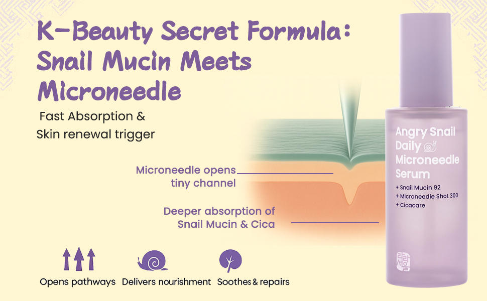 - [Micro-fine Absortion Experience] Powered by 92% snail mucin plus microneedling, this silky serum delivers instant and long-lasting hydration while soothing and strengthening sensitive skin. A unique micro-texture system enhances absorption and leaves skin feeling plump, calm, and deeply refreshed.