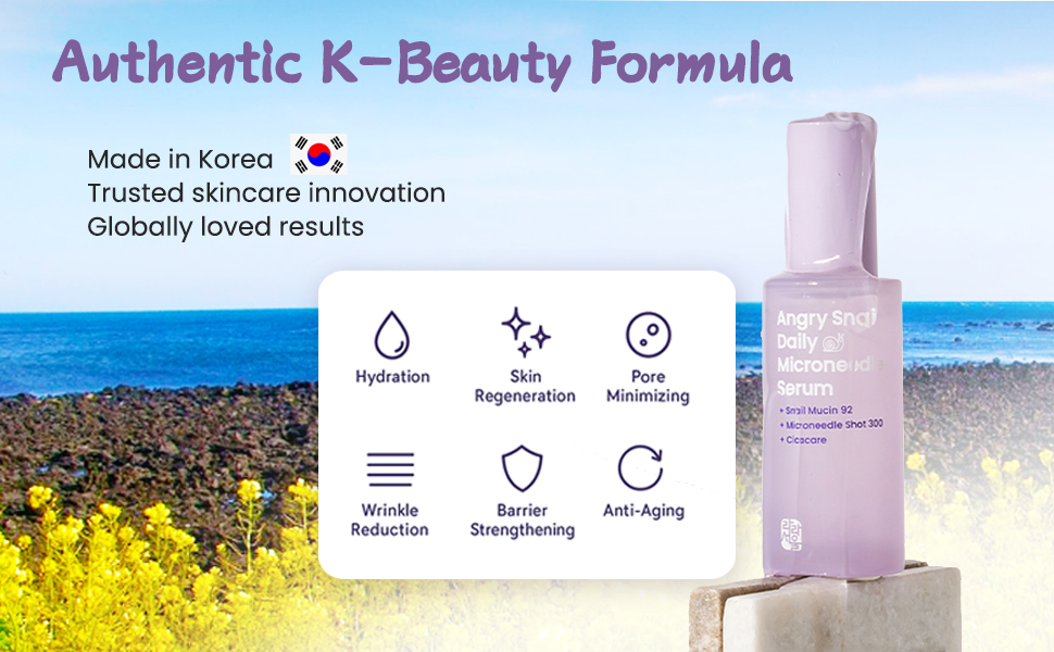 Daily Microneedle Serum “Angry Snail” – 92% Snail Mucin, Microneedle Shot 300, Cica Care, Hydration Serum, Glass Skin, Korean Beauty, 1.69 fl oz / 50ml