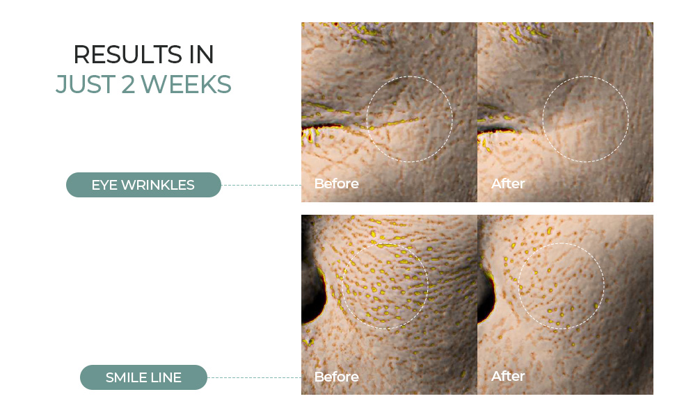 • ✔ [CLINICALLY PROVEN RESULTS]: Proven to reduce eye wrinkles by 19.6% and nasolabial folds by 16.5% within just two weeks, boosting skin radiance by 17.7% and moisture by 28.7%.