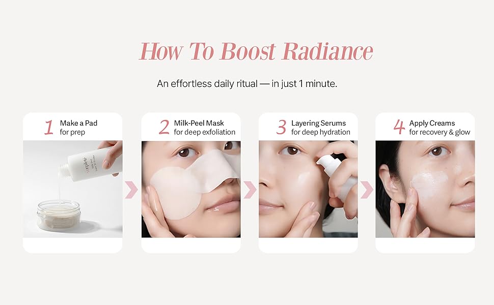 - Anwendung: Nach der Reinigung einmal täglich anwenden. Sanft mit den Händen auftragen oder mit einem Wattepad streichen, um ein verbessertes Peeling zu erzielen. Für ein tieferes Leuchten tränken Sie ein Pad und lassen Sie es für 1 Minute als schnelle Milchpeel-Maske auf der Haut – sichtbar weichere, glattere und strahlendere Haut bei jeder Anwendung.