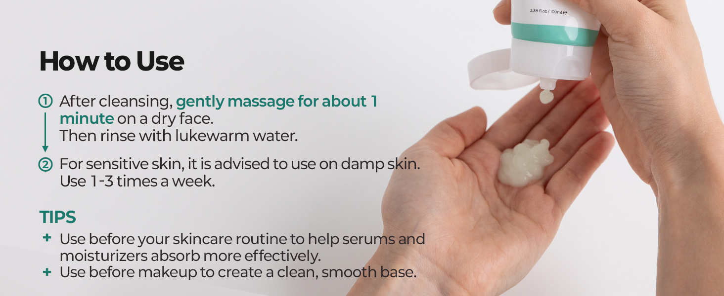 Use as a Body & Feet Scrub: Exfoliate anywhere you want with this peeling gel to have smooth, glowing skin! Hand, elbows, strawberry legs, armpits or feet (heels)