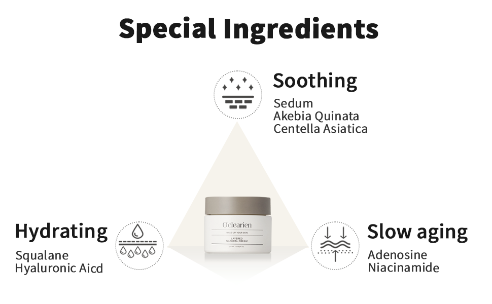 O’CLEARIEN] Geschichtete natürliche Gesichtscreme mit Hyaluronsäure, Anti-Aging, beruhigend, nicht reizend für empfindliche Haut, pflegend, parabenfrei