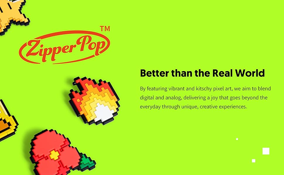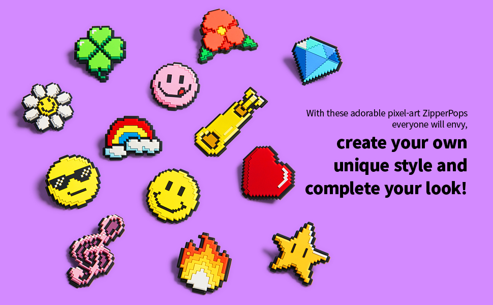 • Retro pixel shoe & zipper charms – Level up your style with these unique Semi-3D pixelated shoe charms! Perfect for customizing sneakers, backpacks, zip-up clothing like jackets and hoodies, and more. Add a gamer aesthetic to your everyday look.