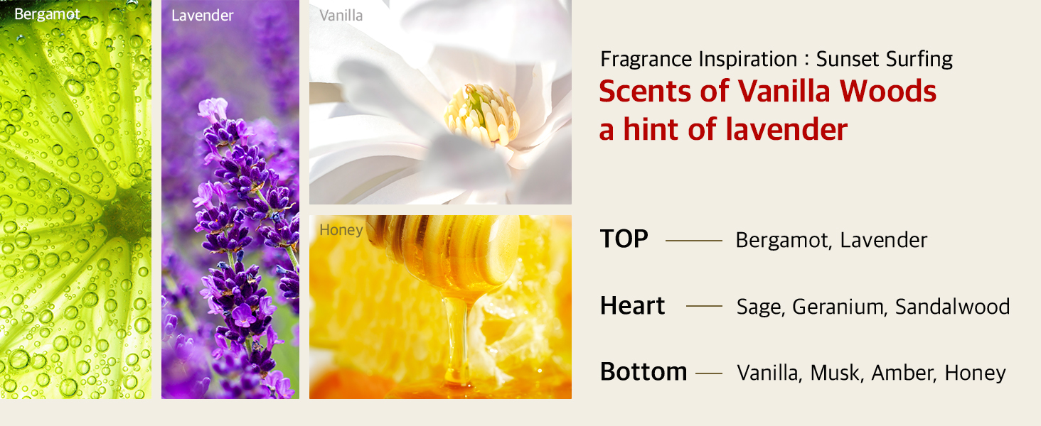 • [INDULGENT SCENT] Enjoy the luxurious and comfort Vanilla Woods fragrance that lingers pleasantly after each use. Discover the key notes of Vanilla, Sandalwood, Bergamot and Lavender.