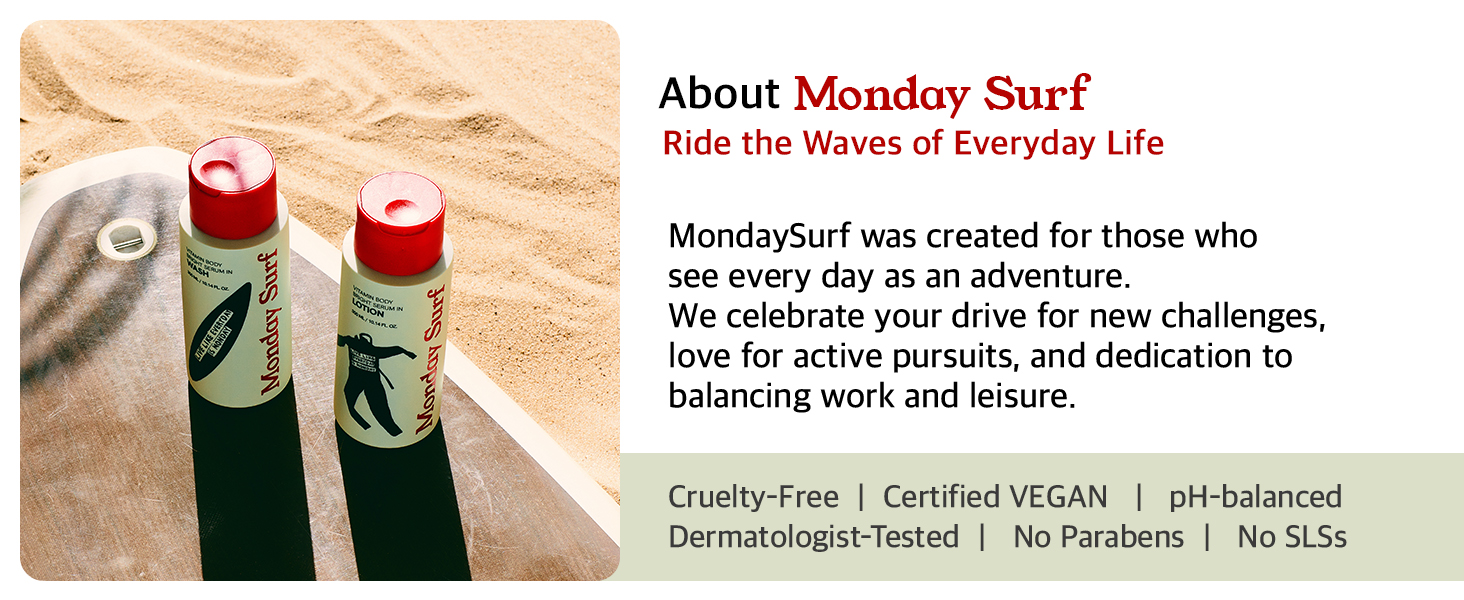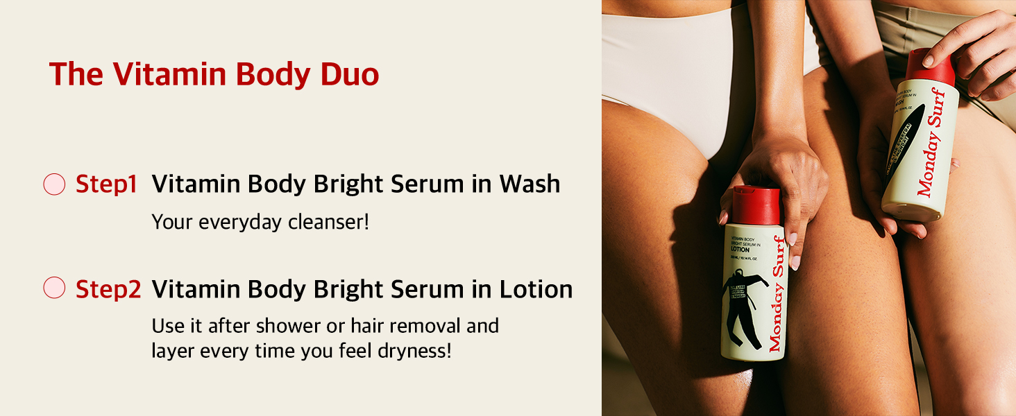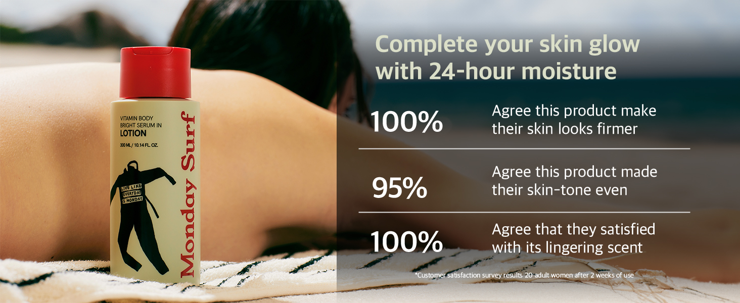 • [DIRECTION FOR USE] Use this mild and soft lotion over body to help relieve and restore dehydrated skin; start by cleansing skin with MondaySurf Vitamin Body Wash for hydrated and glowing skin.
