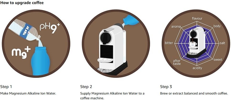 - UPGRADE COFFEE LIFE: 98% of coffee is composed of water, so the quality of water determines the taste of coffee. When brewing or extracting coffee with MINERAL MAKER WATER, it controls negative acidity and bitterness, allowing you to enjoy a smooth and balanced flavor. Moreover, it enhances the aftertaste, ensuring a sustained taste from the moment you take a sip to the moment you finish. Elevate your coffee experience to a new level.