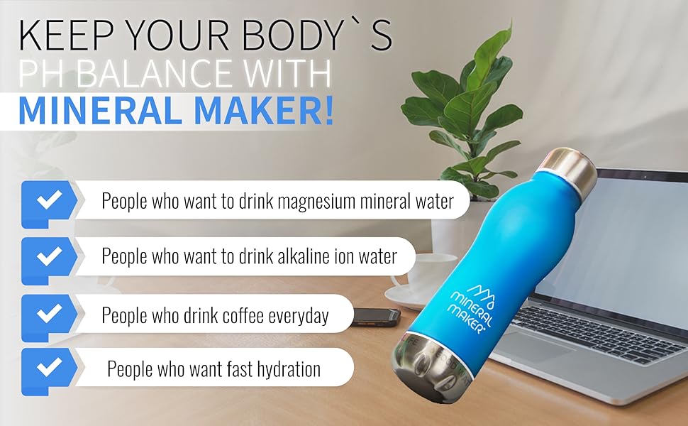 - EFFECTS OF MINERAL MAKER MAGNESIUM WATER: Mineral Maker splits up water particles into small pieces(Fast Hydration), fortifies magnesium mineral and makes water taste soft and fresh. Drinking everyday Magnesium Alkaline Ion Mineral Water helps improve digestive problems when you are on the diet, improve your inner beauty and the skin, making it much more hydrated and soft, and helps you create a beautiful, energized and healthy life.